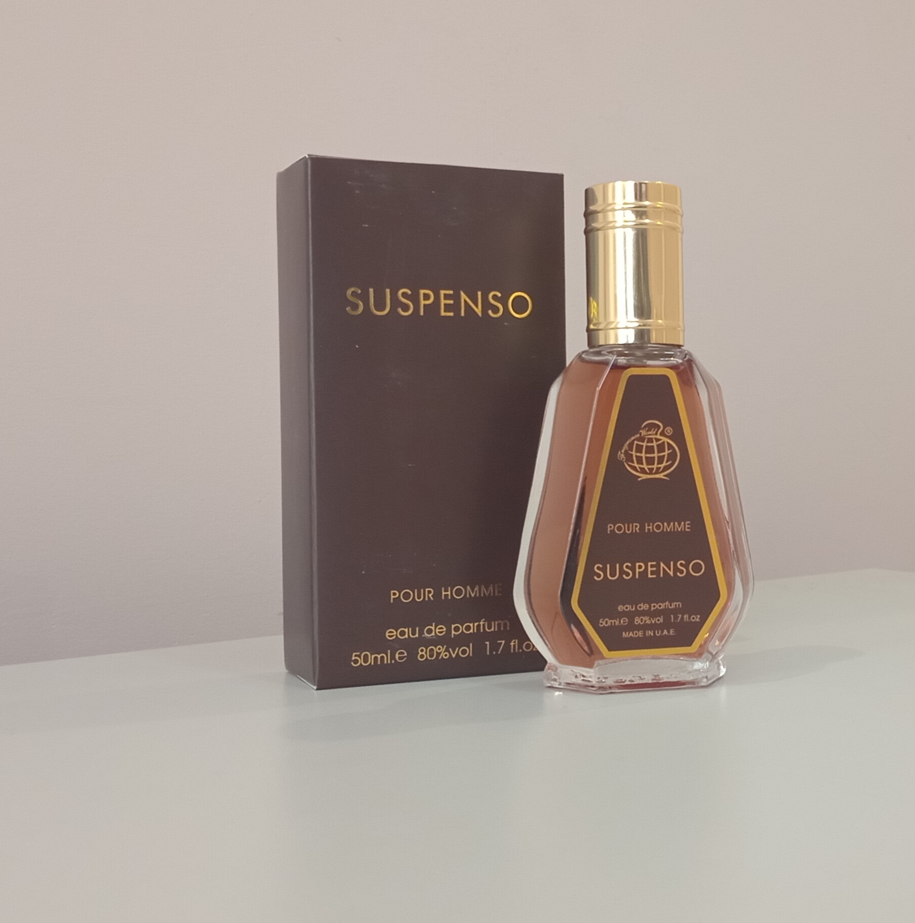 Suspenso for Men by Fragrance World is a daring and confident fragrance designed for the modern gentleman. It opens with a refreshing burst of citrus notes, blended with hints of spice for an energetic first impression. As the scent develops, warm woods and aromatic accords emerge, creating depth and balance. Finally, the base settles into a rich blend of amber, musk, and earthy undertones, leaving behind a trail that is both bold and long-lasting. Suspenso is a fragrance made for men who like to make their presence unforgettable — whether in the office, at an evening gathering, or during a night out.